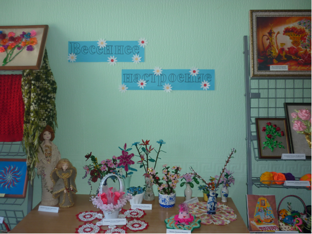 В клубе «Зеркало» 25 апреля открыта выставка, посвященная празднику Весны, Труда, Мира. Участницы клуба выставили свои новинки, работы весенней тематики, выполненные в различных стилях, из разных материалов: бисероплетение, вышивка лентами, вышивка бисером, крестиком, вязание крючком, шитьё, плетение. Это и пасхальные наборы, и весенние цветы, и предметы домашней утвари, и куклы.