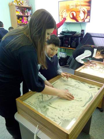 В отделении по работе с семьей и детьми с начала 2017 года в рамках инновационного проекта «Волшебный песок» проводится работа по реабилитации детей-инвалидов с использованием приемов песочной терапии.
