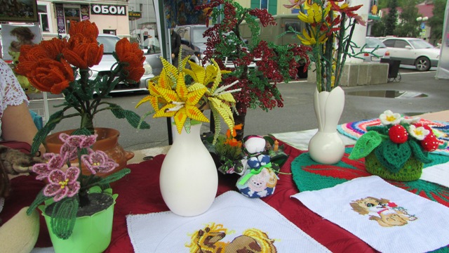Ярко, насыщено и полезно  прошел праздник. Традиционно свое творческое мастерство продемонстировали постоянные члены клубов «Зеркало» и «КЛУБочек», организованные при Управлении социальной поддержки населения города Горно-Алтайска. Они  смогли   не только  выставить   свои изделия, изготовленные из различных природных, искусственных материалов: бисера, мыла,  кожи, пряжи, ниток, - но и  получить прибыль от их продажи.