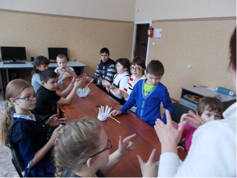 Несколько творческих занятий в январе провела Людмила Черемных с детьми - инвалидами. Ребята учились мастерству плетения из бумаги. Эта работа помогает развитию мелкой моторики рук, которая активизирует работу мозга, воспитывает усидчивость.