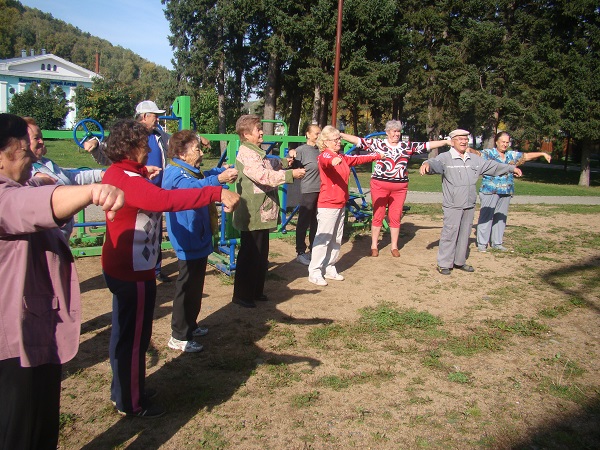 Тренеры из спортивного клуба «Республика» Светлана Черникова и Анастасия Горянская рассказывали, как правильно и безопасно пользоваться спортивными снарядами. Они были внимательны и вежливы с каждым подопечным, предупреждая их о возможных последствиях при передозировке движений, Но вначале, как и подобает, провели разминку и разогрев мышц. В общей сложности в тот солнечный денек занятия посетили 24 ветерана. Все ушли с хорошим настроением, а главное, поняли, что тренажёры при регулярных занятиях могут принести большую пользу.