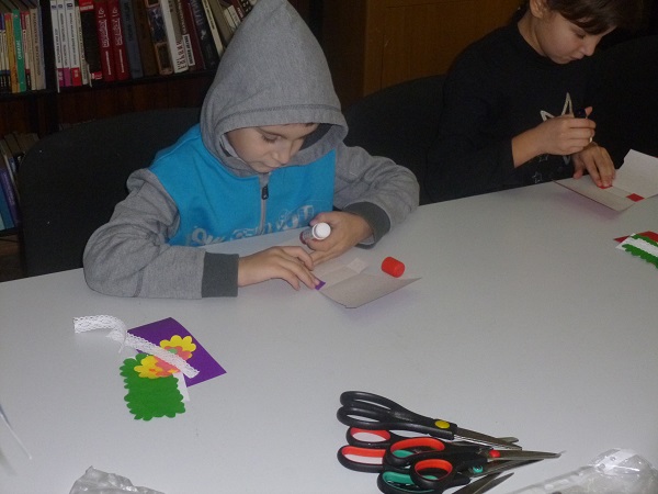 На это творческое мероприятие были приглашены дети из замещающих семей. Каждый ребенок получил заранее приготовленный мини-набор из картона и цветной бумаги. Ребята с большим удовольствием взялись за работу. Немного терпения - и поздравительная открытка готова.