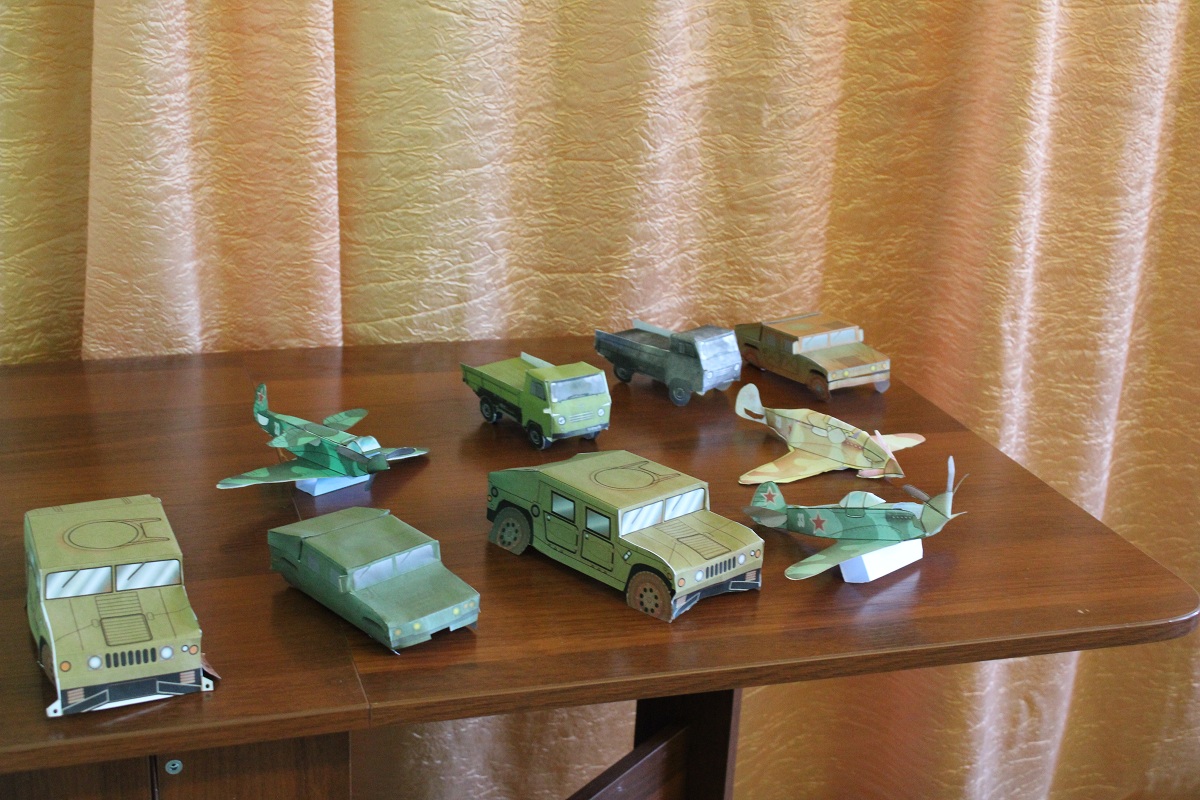Ребята с интересом посмотрели видеоматериал с демонстрацией готовых моделей, а затем приняли активное участие в создании моделей военной техники времен Второй мировой войны из бумаги.