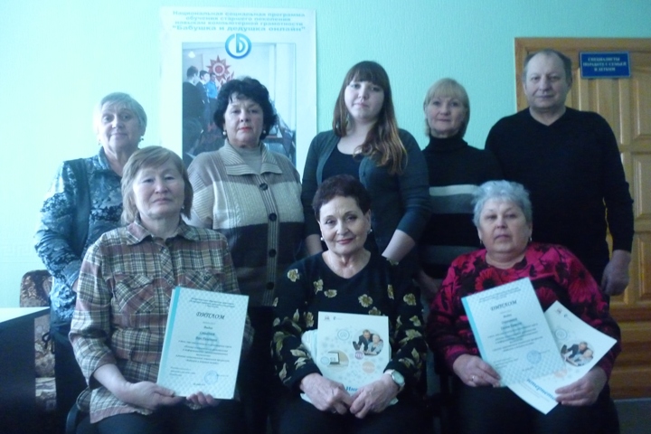 В середине декабря 2014г состоялось вручение дипломов в двух группах об окончании компьютерных курсов по программе «Дедушка и бабушка онлайн». Среди выпускников программы 19 пенсионеров в возрасте от 55 до 75 лет. Все участники проекта с удовольствием общаются в социальных сетях с родственниками и друзьями.