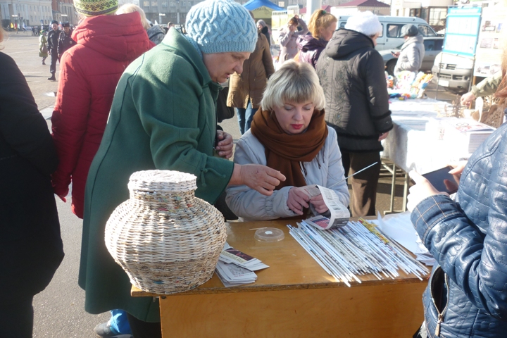 Пока на одной стороне площади развернулась выставка-продажа изделий народного творчества, на другом ее конце проходили тематические мастер-классы и тренинги. Мастер-класс по изготовлению различных предметов из газетных трубочек провела руководитель клуба «Зеркало» Л.Ф.Черемных. Подвижные игры в поддержку здорового образа жизни организовал Некоммерческий фонд «Семья и здоровье», с которым у Управления сложились партнерские отношения.
