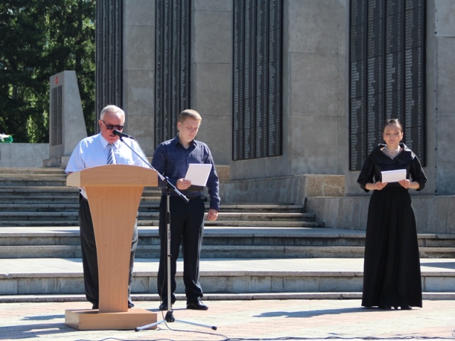 22 июня на мемориальном комплексе Парк Победы в Горно-Алтайске состоялся митинг, посвященный дню памяти и скорби. Около 400 человек, представителей органов государственной власти, ветеранов, курсантов военно-патриотических клубов и жителей Горно-Алтайска, в 75-ую годовщину со дня начала Великой Отечественной войны, почтили память тех, кто ковал нашу победу на фронте и в тылу.