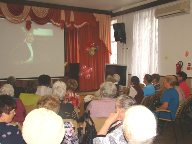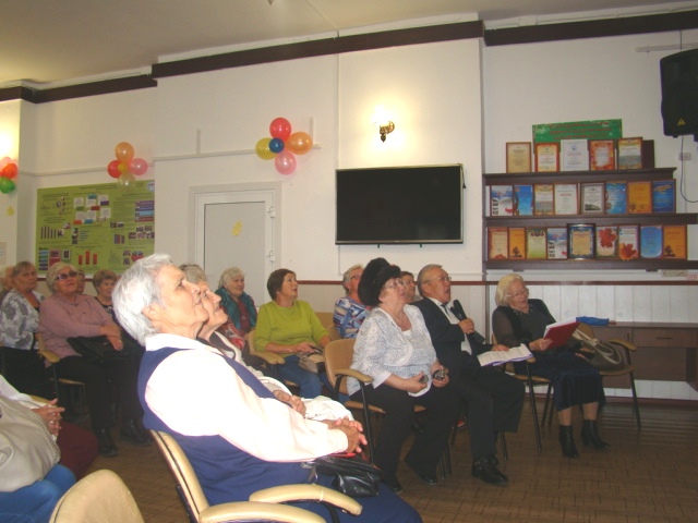 Пожилые эрудиты определяли песни по картинкам, по первым буквам, кадрам и ключевым фразам из старинных фильмов, а затем все вместе исполнили ретро-попурри под караоке.