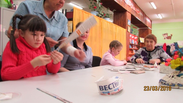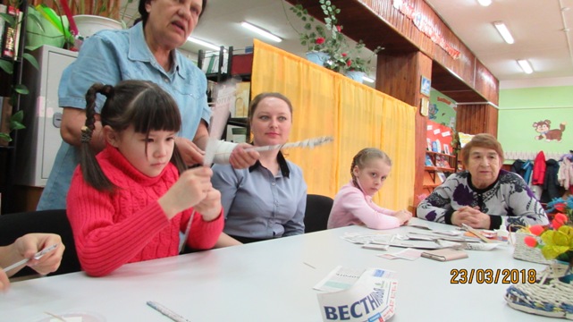 Члены клуба пожилых людей «Зеркало», открытого при Управлении социальной поддержки населения города Горно-Алтайска под руководством Черемных Людмилы Филипповны, поделились с ребятами своими навыками и умениями по изготовлению поделок из бумаги.