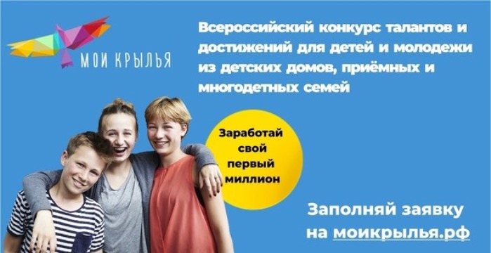 Для участия в проекте с 20 августа до 30 сентября необходимо подготовить трехминутную видеозаявку, рассказывающую про успехи в выбранной сфере, заполнить конкурсную форму на сайте моикрылья.рф и ждать результатов первого тура. Во втором туре к оценке работ участников присоединятся авторитетные и известные эксперты из разных сфер, которые оценят работы и дадут рекомендации по дальнейшему развитию. Теперь про главный приз: победитель в каждой номинации получит грант до 1 000 000 рублей на реализацию той цели, которая максимально необходима ему в данный момент: образование, покупка необходимого оборудования, инвестиции в проект, лечение и пр. Имена самых лучших станут известны в январе на финальном мероприятии, которое пройдет в Москве. С условиями конкурса можно ознакомиться на сайте моикрылья.рф. По всем вопросам: Руководитель конкурса «Мои крылья» Ксения Эрдман +7913-909-28-57 (WhatsAp, Telegram) |