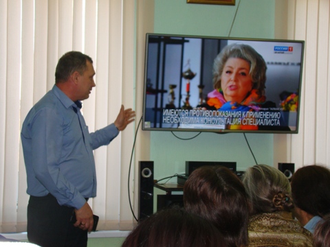 Главный инженер  Андрей Ерёмин продемонстрировал  слушателям специальную цифровую приставку, которую необходимо приобрести, если телевизор старого образца. Он научил собравшихся подключению приставки и   настройке телевизора.