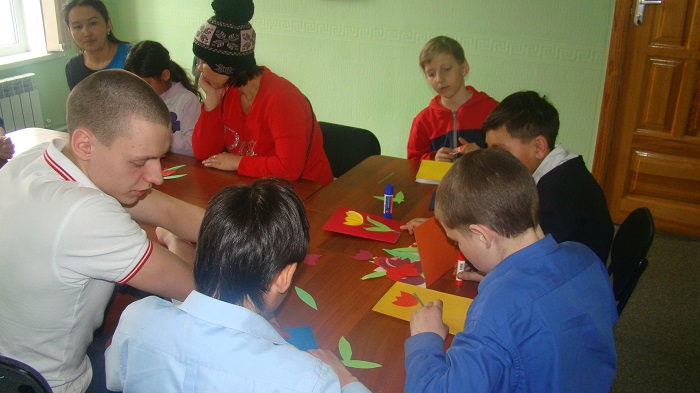 В преддверии праздника кипела работа в творческих мастерских для детей и их родителей. Ребята активно участвовали в изготовлении открыток к 8 Марта, готовились порадовать собственными подарками своих мам и бабушек.
